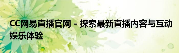 欢迎来到CC网易直播官网!这里是直播内容与互动娱乐的汇聚之地,为您带来最新鲜、最热门的直播体验。