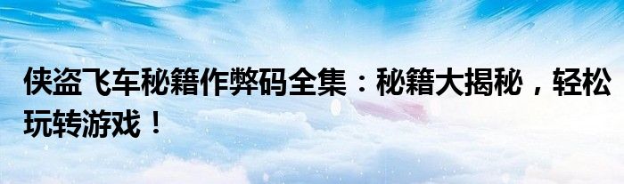 侠盗飞车秘籍作弊码全集:秘籍大揭秘,轻松玩转游戏!