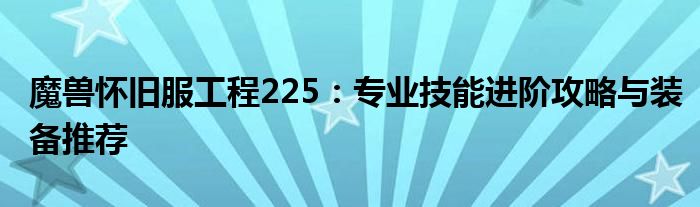 魔兽怀旧服工程225:专业技能进阶攻略与装备推荐