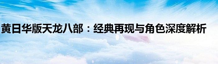 黄日华版天龙八部:经典再现与角色深度解析