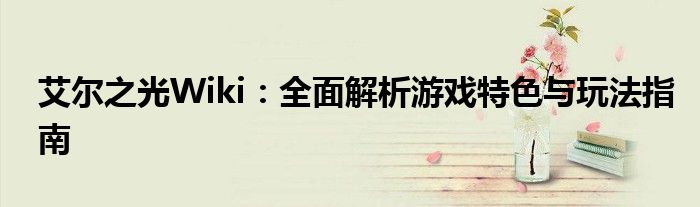 艾尔之光Wiki:全面解析游戏特色与玩法指南