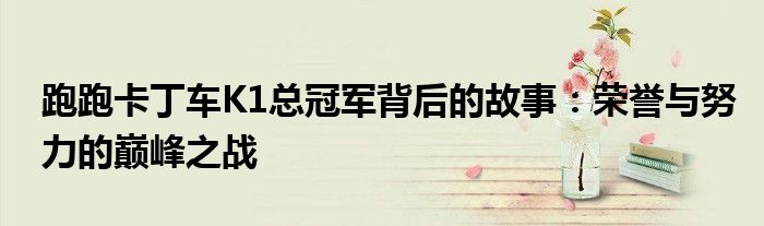 总之,跑跑卡丁车K1总冠军的背后是无数次的努力和付出。他的成长历程、成功背后的故事以及游戏中的精彩表现,都向我们展示了一个热爱游戏、勇于挑战、不断进取的形象。相信在未来的日子里,他会在游戏世界中继续创造更多的辉煌。