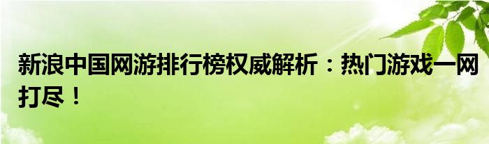 新浪中国网游排行榜权威解析:热门游戏一网打尽!