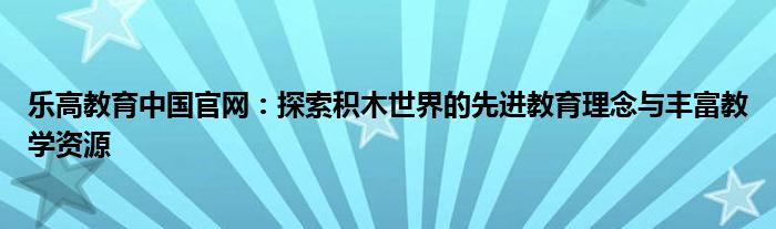 乐高教育中国官网:探索积木世界的先进教育理念与丰富教学资源