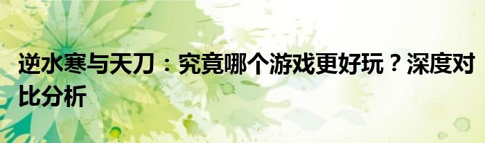 逆水寒与天刀:究竟哪个游戏更好玩?深度对比分析