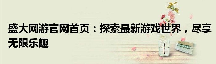 盛大网游官网首页:探索最新游戏世界,尽享无限乐趣