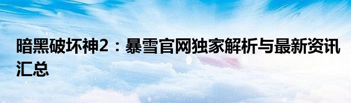 暗黑破坏神2:暴雪官网独家解析与最新资讯汇总