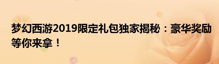梦幻西游2019限定礼包独家揭秘:豪华奖励等你来拿!