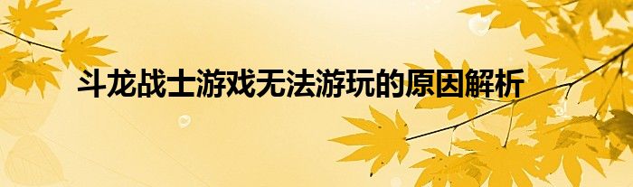 斗龙战士游戏是一款备受欢迎的游戏,但有时玩家可能会遇到无法游玩的情况。本文将探讨可能导致游戏无法游玩的原因,并尝试提供相应的解决方案。