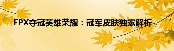 FPX夺冠英雄荣耀:冠军皮肤独家解析