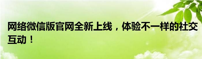 网络微信版官网全新上线,体验不一样的社交互动!