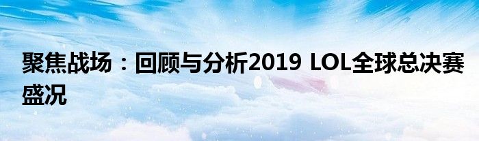 聚焦战场:回顾与分析2019 LOL全球总决赛盛况