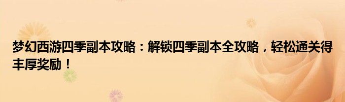 梦幻西游四季副本攻略:解锁四季副本全攻略,轻松通关得丰厚奖励!