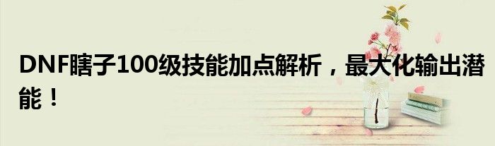 本文将详细介绍在DNF游戏中,瞎子角色在达到100级时的技能加点策略,帮助玩家更好地发挥瞎子的战斗能力,实现最大化输出潜能。