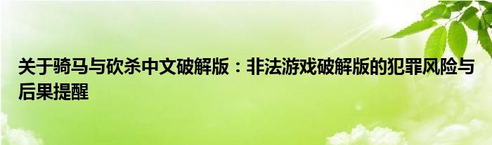 关于骑马与砍杀中文破解版:非法游戏破解版的犯罪风险与后果提醒
