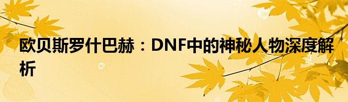 欧贝斯罗什巴赫:DNF中的神秘人物深度解析