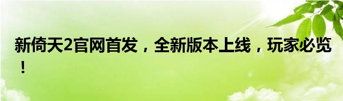 欢迎来到新倚天2官网!我们很高兴地宣布,全新版本已经正式上线,为广大玩家带来全新的游戏体验。在这里,您可以找到最新的游戏资讯、最全面的游戏攻略、最丰富的游戏内容,以及更多精彩活动。