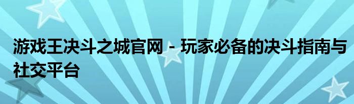 游戏王决斗之城官网 - 玩家必备的决斗指南与社交平台