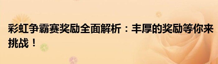 彩虹争霸赛奖励全面解析:丰厚的奖励等你来挑战!