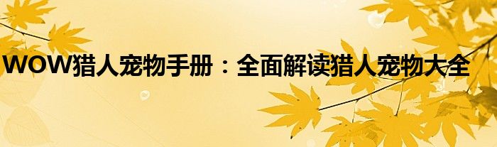 WOW猎人宠物手册:全面解读猎人宠物大全