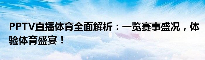 PPTV直播体育全面解析:一览赛事盛况,体验体育盛宴!