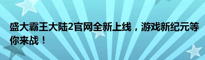 尊敬的游戏爱好者们,盛大霸王大陆2官网已经全新上线,开启了一段崭新的游戏纪元!在这里,你可以了解到关于这款游戏的所有最新资讯和动态。