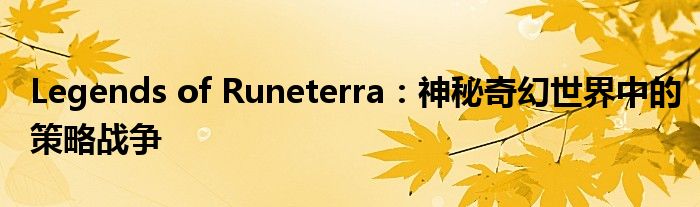 Legends of Runeterra:神秘奇幻世界中的策略战争