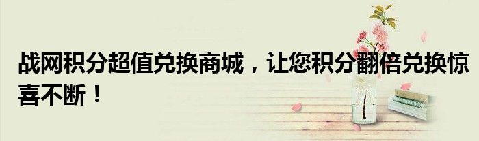战网积分超值兑换商城,让您积分翻倍兑换惊喜不断!