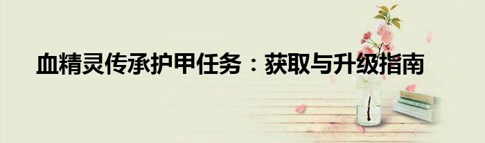血精灵传承护甲任务:获取与升级指南