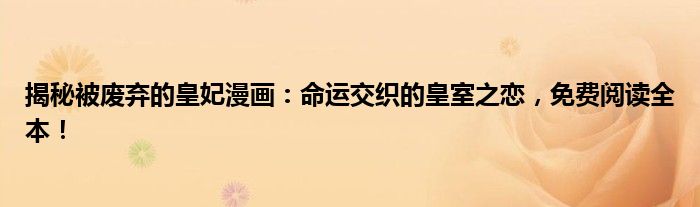 揭秘被废弃的皇妃漫画:命运交织的皇室之恋,免费阅读全本!