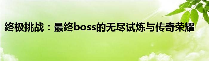 终极挑战:最终boss的无尽试炼与传奇荣耀