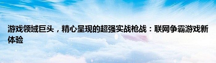 游戏领域巨头,精心呈现的超强实战枪战:联网争霸游戏新体验