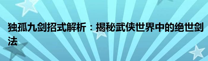 独孤九剑招式解析:揭秘武侠世界中的绝世剑法