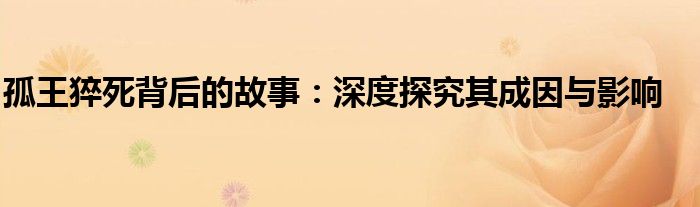 孤王猝死事件不仅让我们深感痛惜,也给我们带来了深刻的启示。本文旨在深度探究这一事件的成因和影响,希望为人们的生活健康和社会环境的营造带来积极的启示和改变。