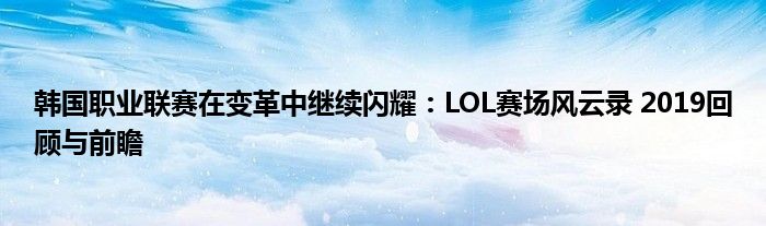 在全球电子竞技风起云涌之际,韩国的电子竞技也处在领先地位。本文将深入探讨关于LOL职业联赛2019在韩国的情况。一方面回顾过去一年的亮点和进步,另一方面也前瞻未来的挑战和机遇。