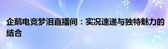 企鹅电竞梦泪直播间:实况速递与独特魅力的结合