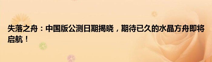 失落之舟:中国版公测日期揭晓,期待已久的水晶方舟即将启航!
