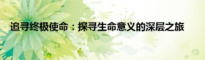 每个人的生命都是一部史诗,充满着荣耀与挑战。从出生的那一刻起,我们便踏上了探寻生命意义的旅程。在这个过程中,“最终使命”成为我们前行的方向标,指引我们不断前行。追寻最终使命的过程,也是一次对自我认知的深化和对生命价值的挖掘。