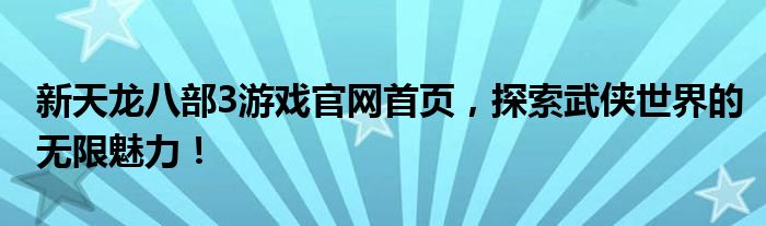 新天龙八部3游戏官网首页,探索武侠世界的无限魅力!