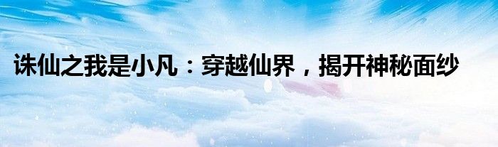 诛仙之我是小凡:穿越仙界,揭开神秘面纱