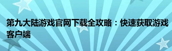 第九大陆游戏官网下载全攻略:快速获取游戏客户端