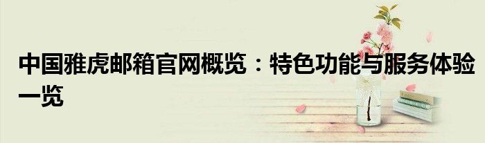 标题明确聚焦于中国雅虎邮箱官网的特定主题。正文将围绕着这一标题展开。在这个文章中,我们将探索中国雅虎邮箱官网的众多功能,用户体验以及其特色优势等各个方面。让我们一起更深入地了解中国雅虎邮箱的服务细节与品质。