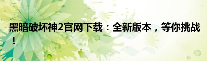 黑暗破坏神2官网下载:全新版本,等你挑战!
