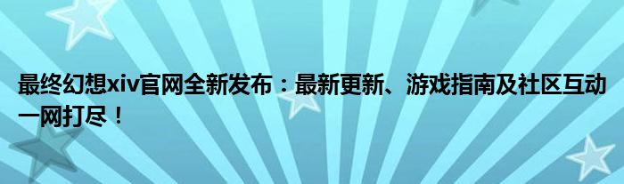 n尊敬的游戏爱好者们,欢迎访问“最终幻想xiv官网”!这里是最终幻想XIV游戏的最新资讯、游戏更新、玩家指南和社区互动的聚集地。\n\n一、最新更新\n\n我们为您带来了最新的游戏更新信息,包括新职业、新任务、新增物品以及最新的补丁信息。您可以在此处详细了解最新的游戏内容,以及更新后的游戏指南和攻略。\n\n二、游戏指南\n\n无论您是新手还是资深玩家,我们的游戏指南都能为您提供帮助。这里包含了角色发展、技能提升、任务攻略、副本挑战等详尽的指南,助您在游戏中轻松前行。\n\n三、社区互动\n\n我们拥有一个充满活力的社区,这里聚集了众多热爱最终幻想XIV的玩家。您可以在社区中分享您的游戏经验,交流心得,或者寻求其他玩家的帮助和建议。此外,我们还会定期举办社区活动,让玩家们在游戏中享受更多乐趣。\n\n四、官网特色功能\n\n1. 定制角色:在官网上,您可以定制自己的角色形象,展示您的独特风格。\n2. 新闻与活动:获取最新的游戏新闻、活动信息和独家优惠。\n3. 论坛交流:参与论坛讨论,与全球玩家分享您的游戏心得。\n\n请继续访问我们的官网,获取更多关于最终幻想XIV的最新资讯和精彩内容。让我们一起在艾欧泽亚的世界里,开启全新的冒险之旅!