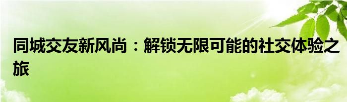 在这个快节奏的时代,人与人之间的沟通与交流愈发重要。随着社交方式的多样化,“同城交友”已经成为越来越多人的社交选择。这里我们将一同探索一种全新的同城交友新风尚,解锁无限可能的社交体验之旅。