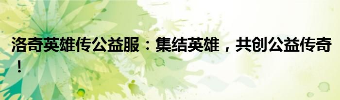 洛奇英雄传公益服:集结英雄,共创公益传奇!