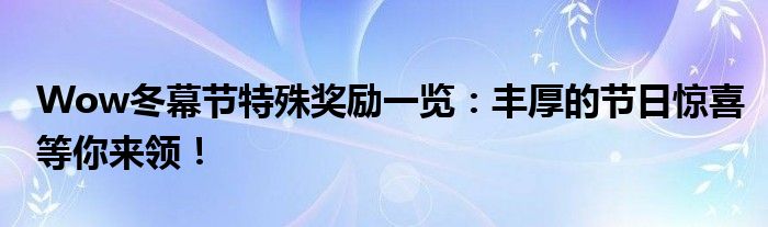 Wow冬幕节特殊奖励一览:丰厚的节日惊喜等你来领!