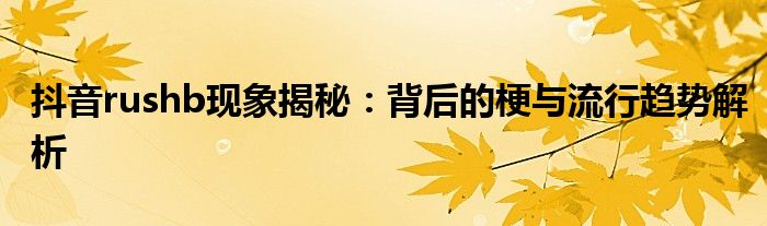 抖音rushb现象揭秘:背后的梗与流行趋势解析