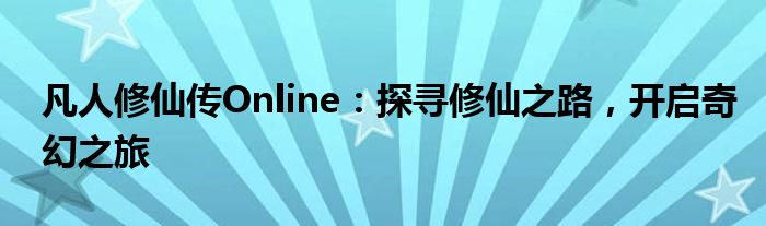 凡人修仙传Online:探寻修仙之路,开启奇幻之旅