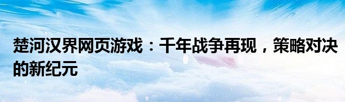 楚河汉界网页游戏:千年战争再现,策略对决的新纪元
